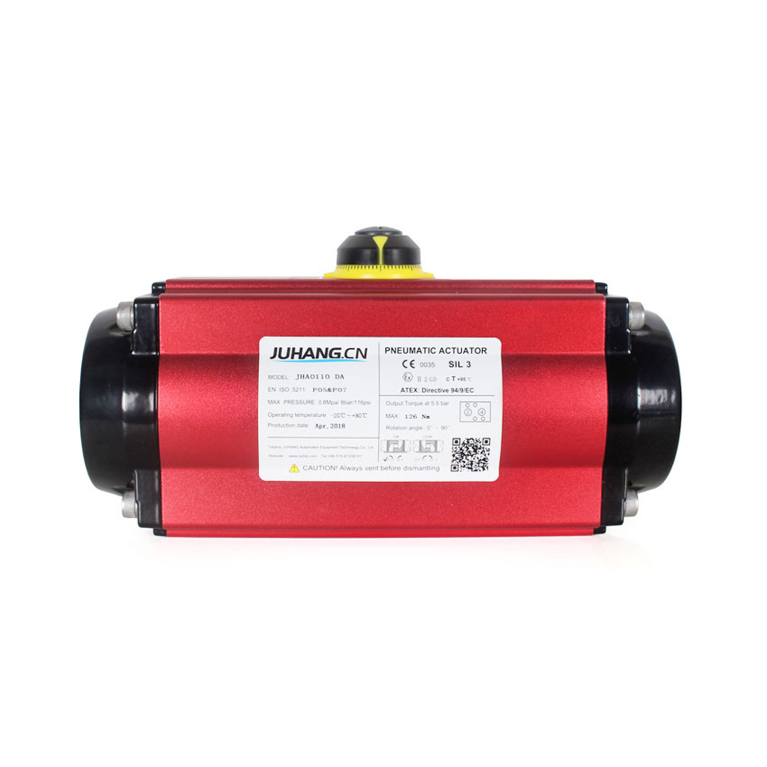 ரேக் மற்றும் பினியன் நியூமேடிக் ஆக்சுவேட்டர் இரட்டை நடிப்பு JHA0110DA, உயர் தரம், குறைந்த உராய்வு, நீண்ட ஆயுள், மாறுதல் நேரங்கள் 1 மில்லியன் மடங்கு அதிகமாகும், அதிக நிலைத்தன்மை.