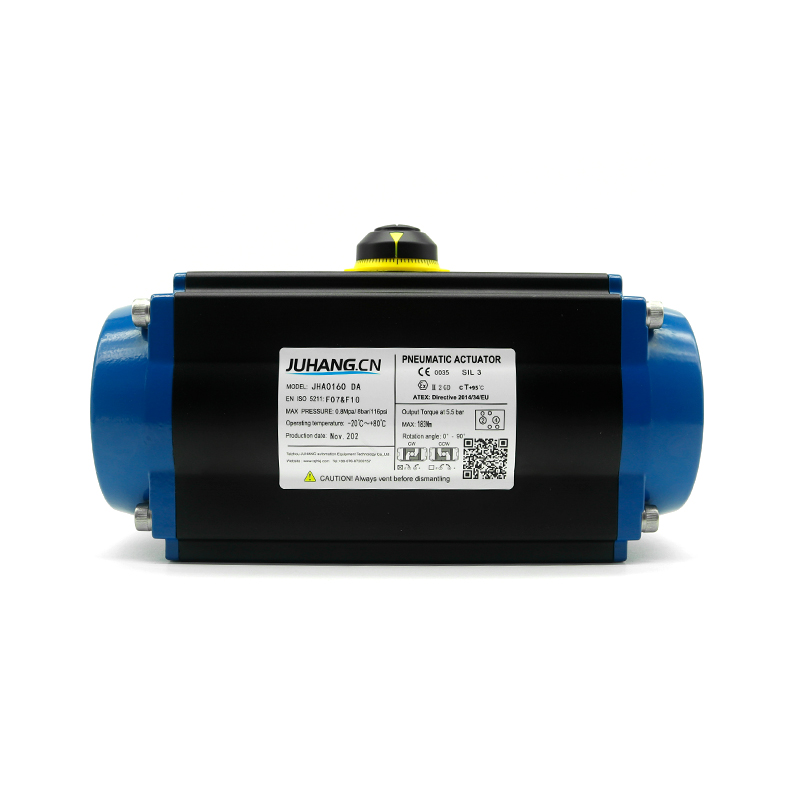 ரேக் மற்றும் பினியன் நியூமேடிக் ஆக்சுவேட்டர் இரட்டை நடிப்பு JHA0160DA, உயர் தரம், குறைந்த உராய்வு, நீண்ட ஆயுள், மாறுதல் நேரங்கள் 1 மில்லியன் மடங்கு அதிகமாகும், அதிக நிலைத்தன்மை.